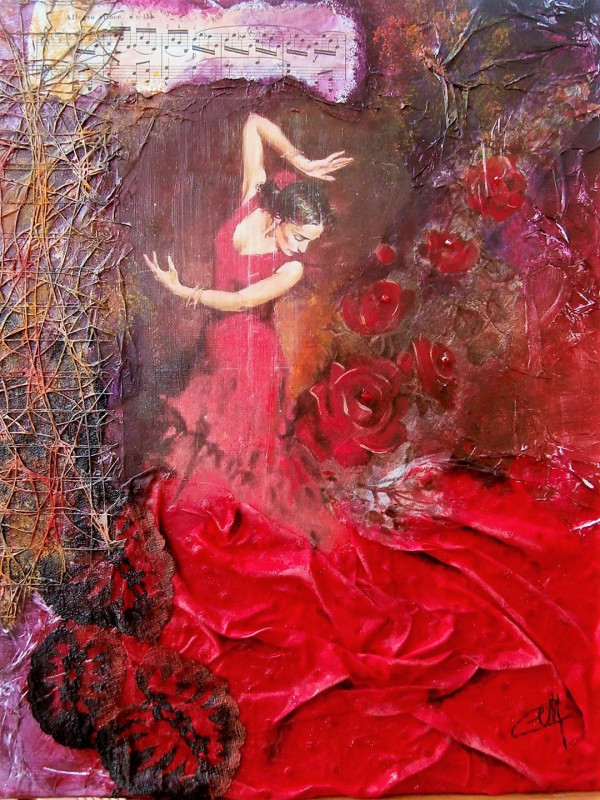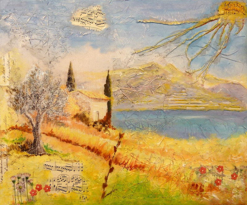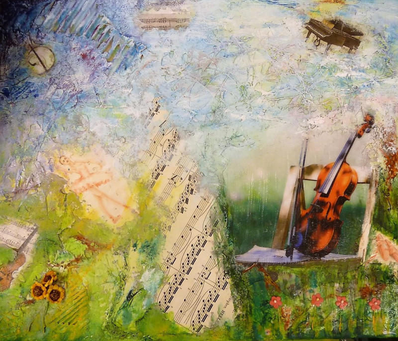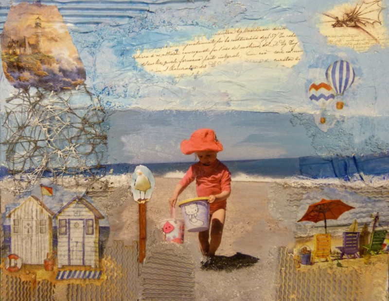 La technique du "Mixed media" permet aux participants de créer, au cours des stages, des oeuvres qui mélangent diverses matières et textures (peinture, collage de papier, photos, boutons, fils, tissus...) Les possibilités sont infinies.