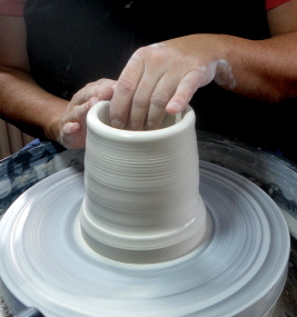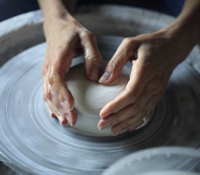 L'activité "Tournage terre" permet aux participants de découvrir le maniement du tour de potier.